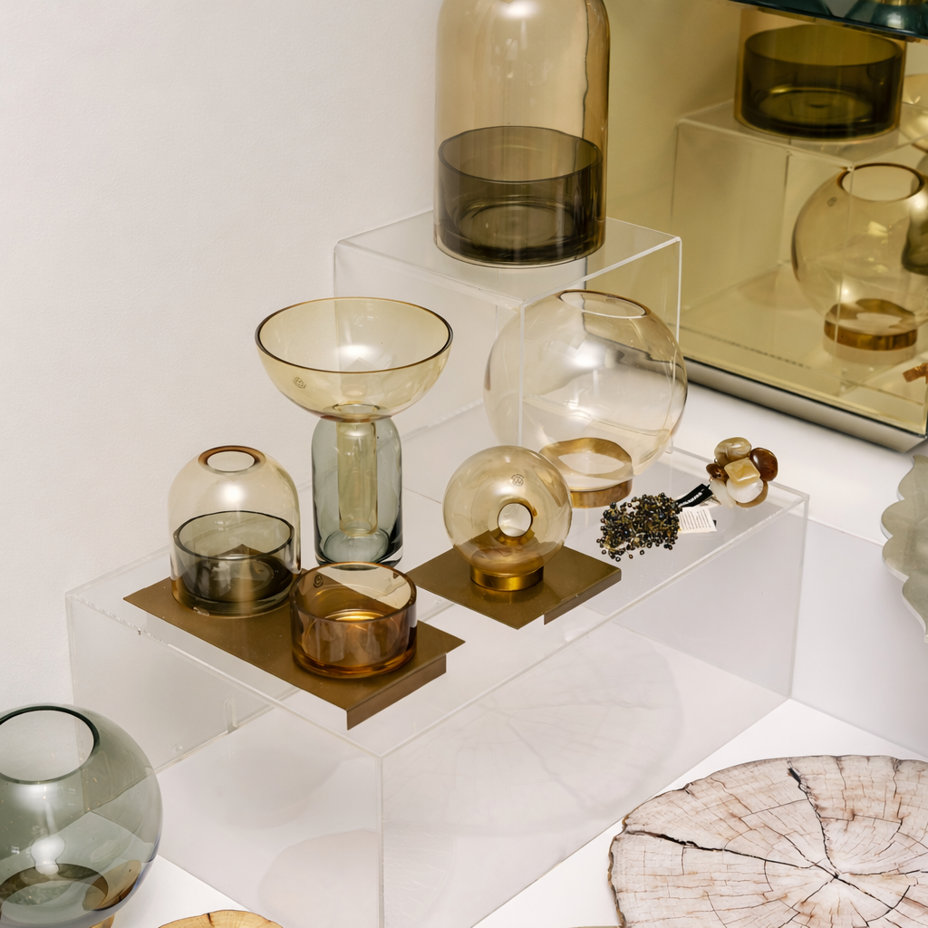 Our AYTM glass vases are now available with exclusive multi-piece savings — 15% off one, up to 40% off when selecting four. In luminous rose, deep forest green, blue, amber and black, they are striking alone and exceptional in combination. Limited quantities available. Great for MOTHER'S DAY. Sale ENDS Midnight Saturday 7 March.