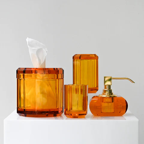 I am often asked how the gorgeous gold bathroom accessories that are available will fit in with chrome fittings. As above, the answer is to remember that you do not want to change everything to gold - you want to do add gold accents strategically instead of updating everything. In fact purposefully mixing different metals can provide a sense of contrast and interest; and does not need to be avoided. A beautiful set of gold accessories such as a soap dispenser, tumbler and tissue box will look perfectly at ease with chrome fittings.
