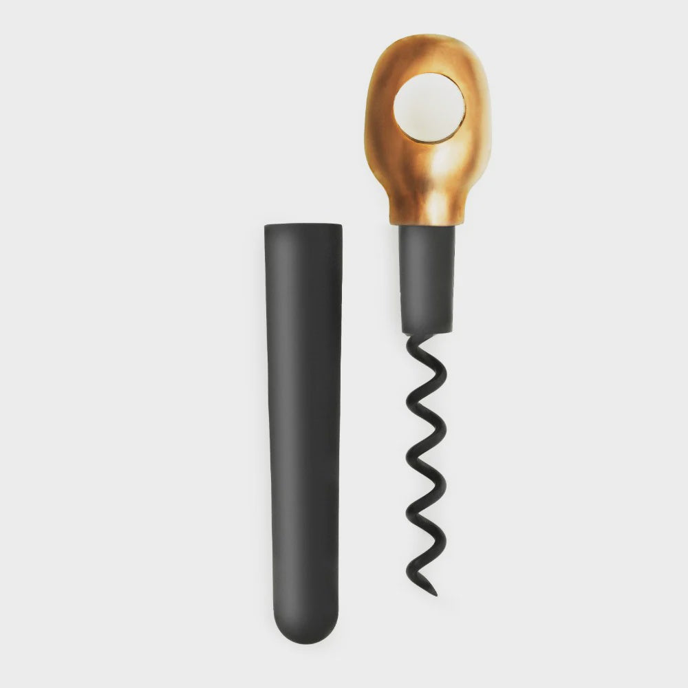 The "Basic" series by Normann CPH consists of four items: a foil cutter, a wine stopper, a corkscrew and a wine pourer that helps oxidize the wine. The designer aimed to cut out all unnecessary details and gimmicks in order to focus on the raw form and basic function. The organic shapes and the finish add warmth and nostalgia to the design and soften the expression.