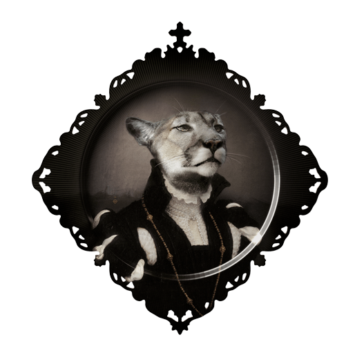 The animal, a personality of stately demeanor, imposes himself as visionary master, a guardian of her century's influence.