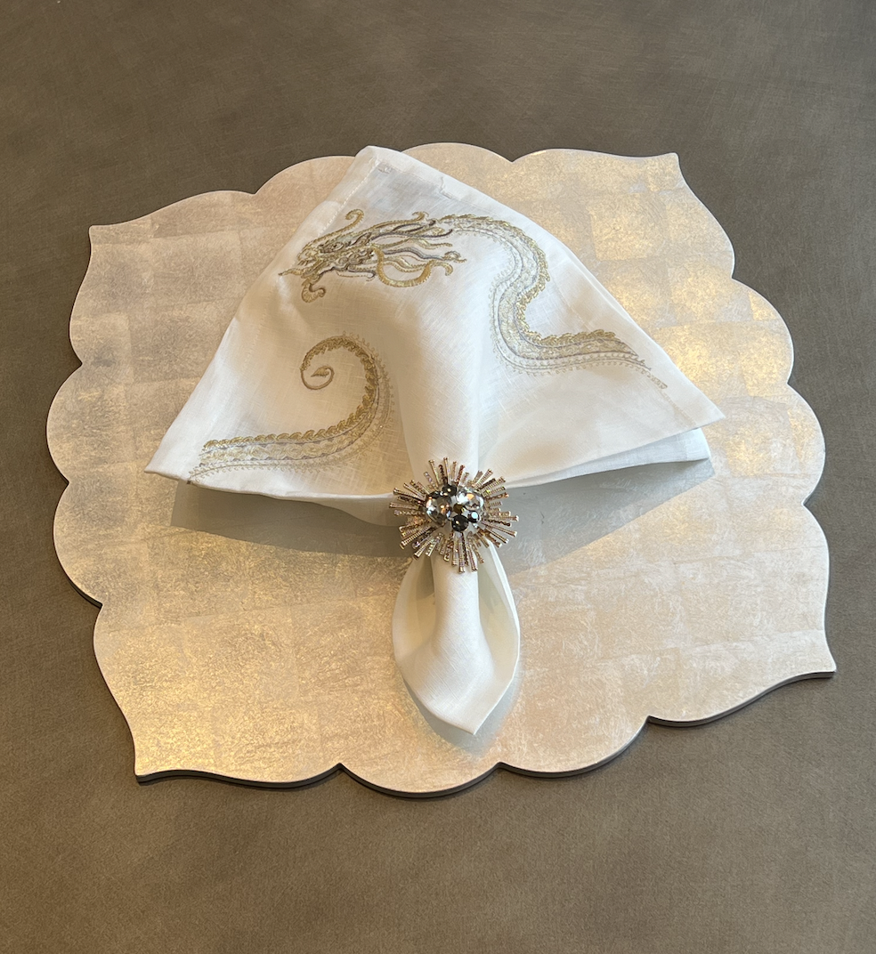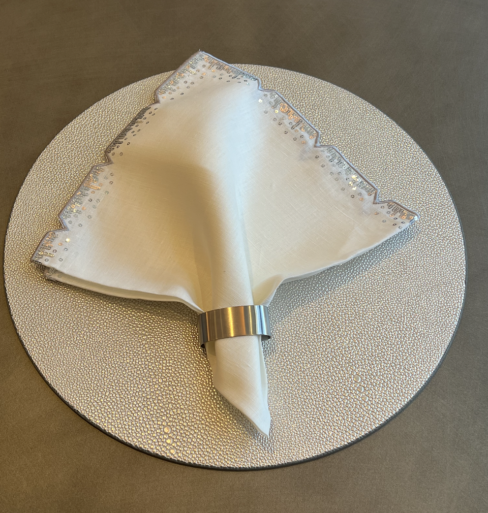 Discover our curated table setting bundles, thoughtfully paired to take the guesswork out of styling your table. Each set brings together Kim Seybert placemats and napkins, complemented by napkin rings from Kim Seybert, Cutipol, and XL Boom — designed to create a cohesive and refined dining experience.