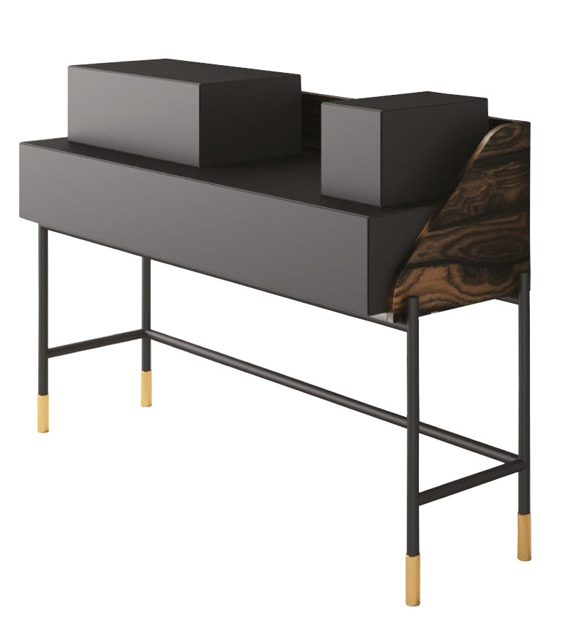 Freestanding column with flap door in agglomerate wood plus compartment with hinged door. Exterior available in embossed or laser/wood grain finish.