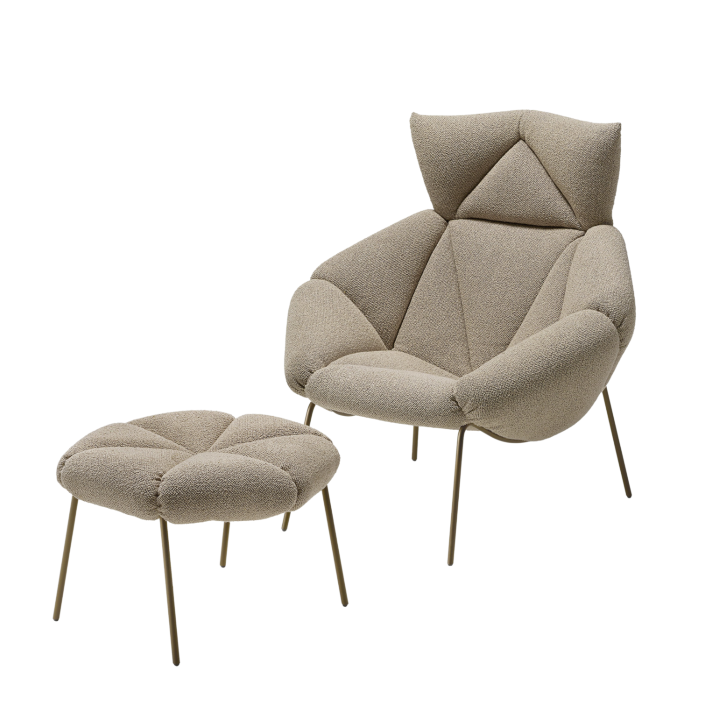 The Bikram sideboard, designed by Ronda Design, features rounded shapes and is made of metal. Its modular design allows for various combinations.
