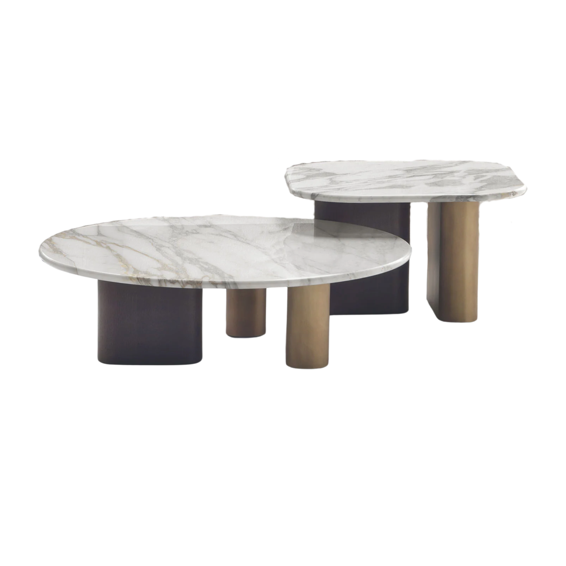 Made in Vietri, the Dione Coffee Table features a round shape with sculptural dimensions. The combination of luxurious materials such as marble, metal, gold and handcrafted ceramic come together beautifully to create a timeless piece. The attention to detail and skilled craftsmanship of these coffee tables ensure they will be cherished for years to come.