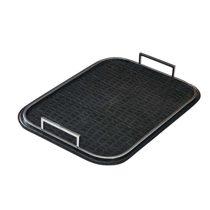 Giobagnara Leather Montego Table Cigar Lighter- Black Crocodile