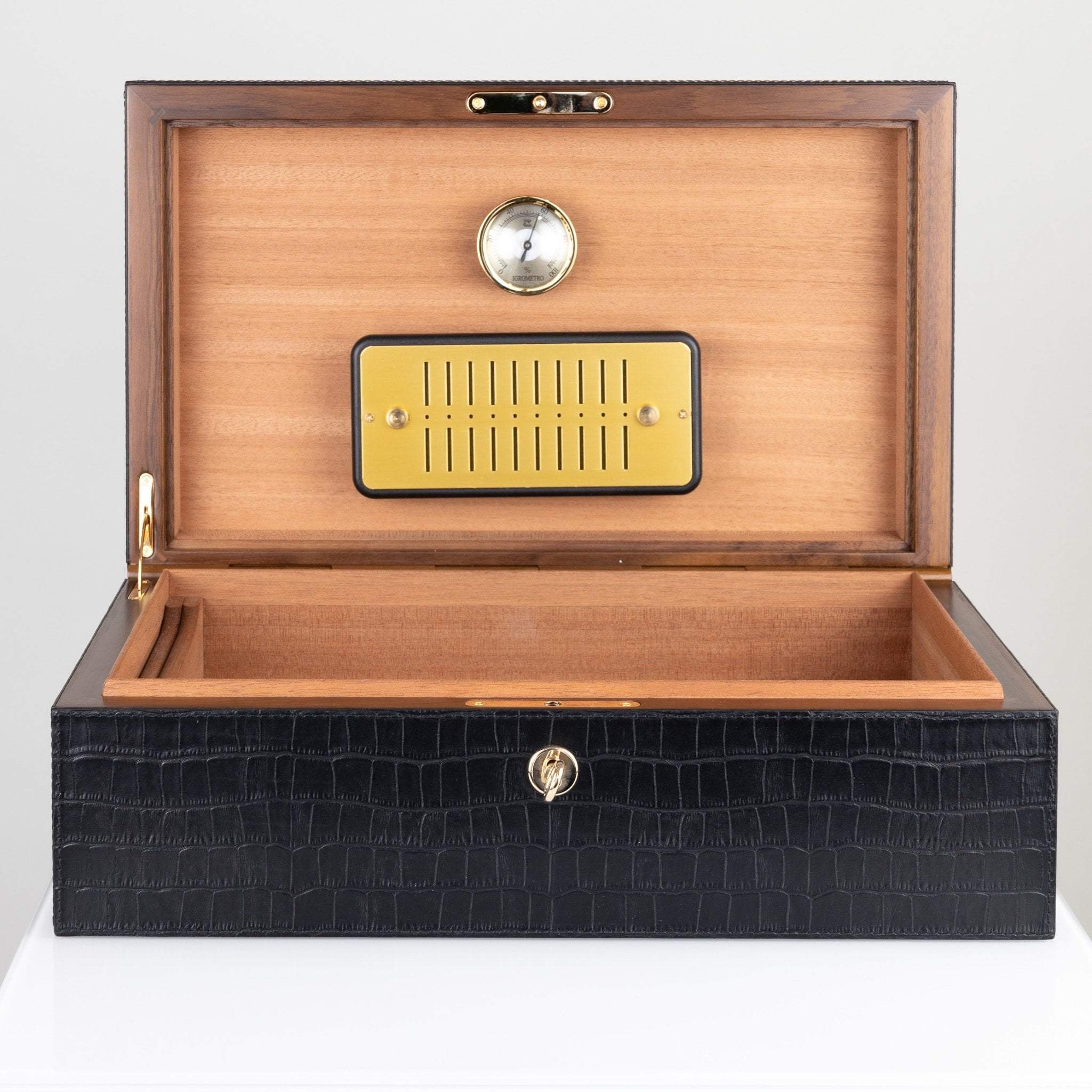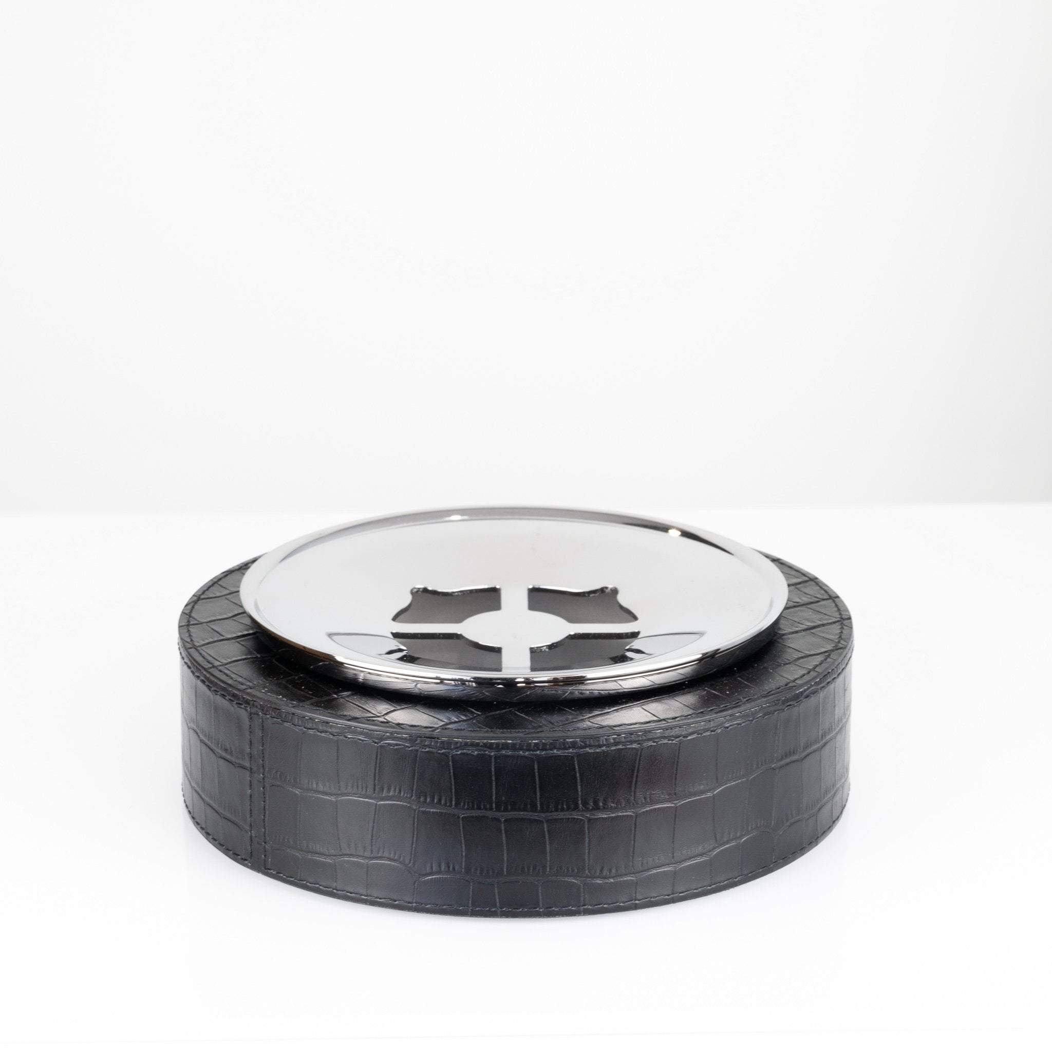 Giobagnara Leather Pinar Cigar Ashtray- Black Crocodile Print