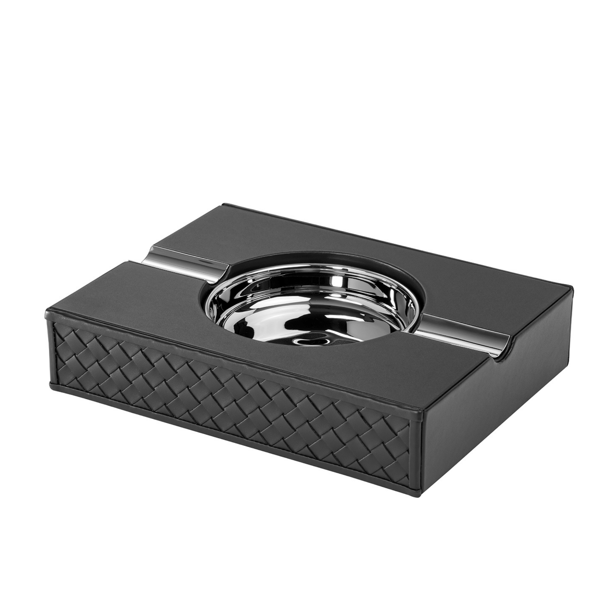 The GIOBAGNARA Pinar Cigar Ashtray is a sophisticated piece for the cigar lover. It has a leather covered wooden base with a chrome finished metal basin and cigar gholder. Lighters and cigar holders are also available in matching and bespoke leather finishes.