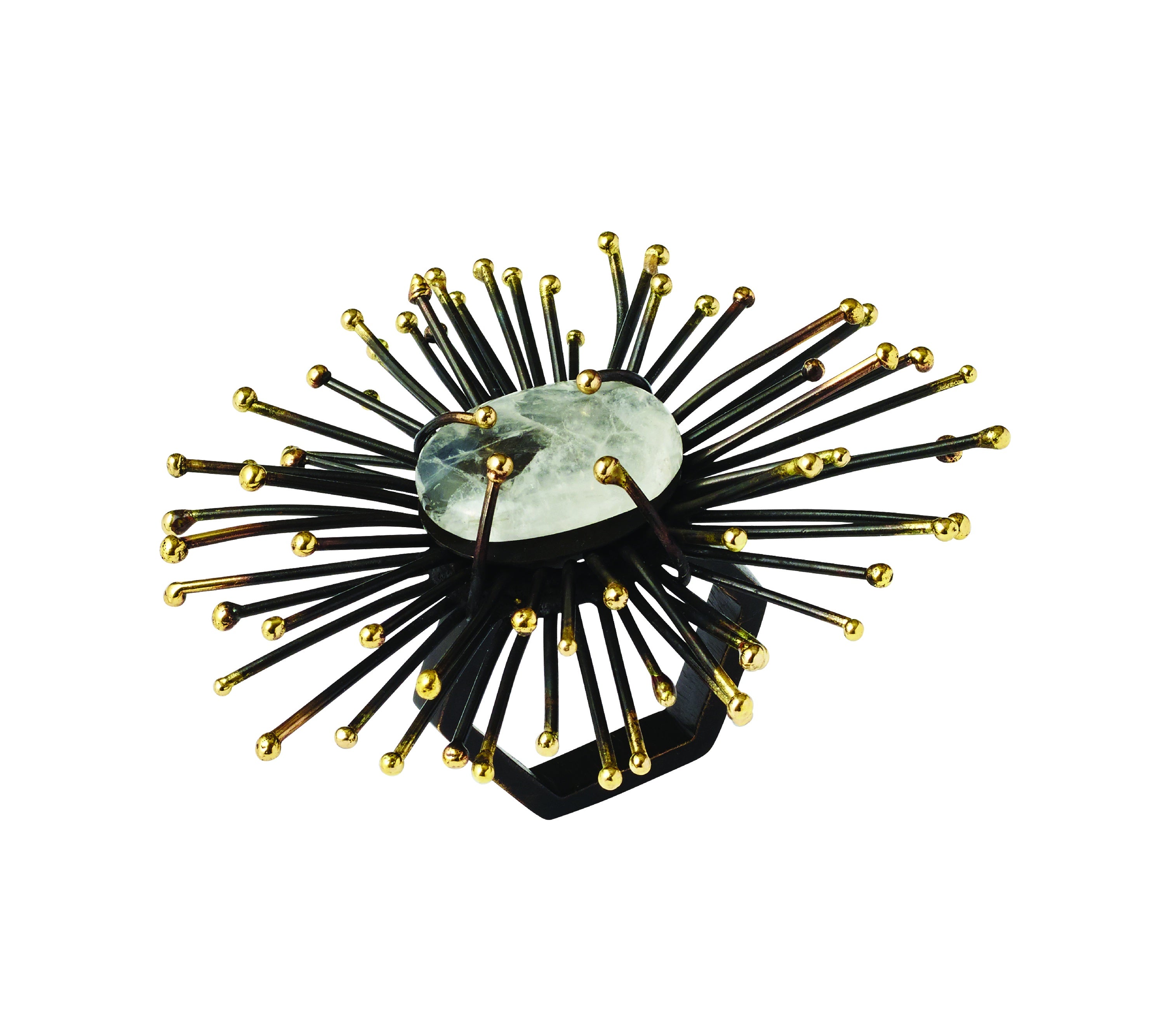 Inspired by streamlined, geometric Art Deco elements, the Deco Placemat features a high-contrast palette and linear forms. Made from acrylic, a black and white pattern is outlined in gold. Dress up this versatile and easy to clean placemat or let the bold pattern stand alone.