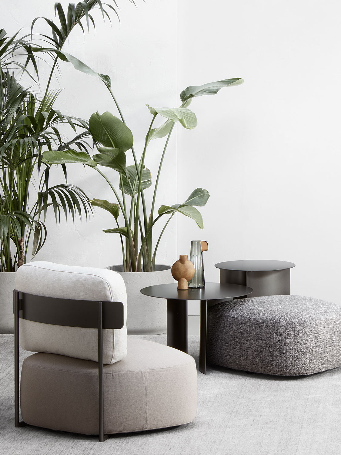 Lilia is a 360° swivel armchair boasting an organic shape reminiscent of a Calla lily that has just bloomed. The soft backrest delicately encases the seat, while the asymmetrical armrests lend a contemporary and original look to the design.