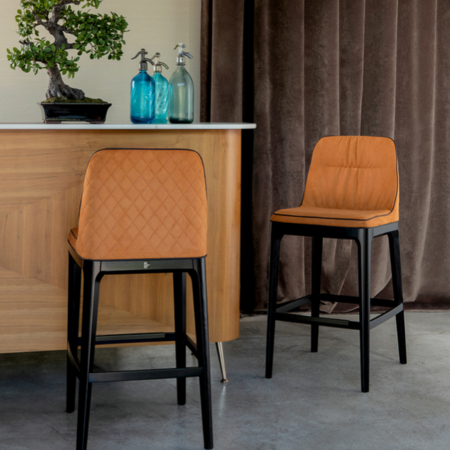Cold polyurethane foam was injected into this chair’s structure, and that makes it exceptionally comfortable. Angelo Tomaiuolo’s design is refined and elegant, both in the arm-free, and regular version. The leather, eco-leather, grain leather, or Nubuk leather upholstery are completed by the precious creasing.