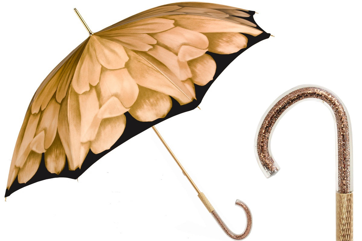 Red Dahlia Umbrella with Black Glitter Handle