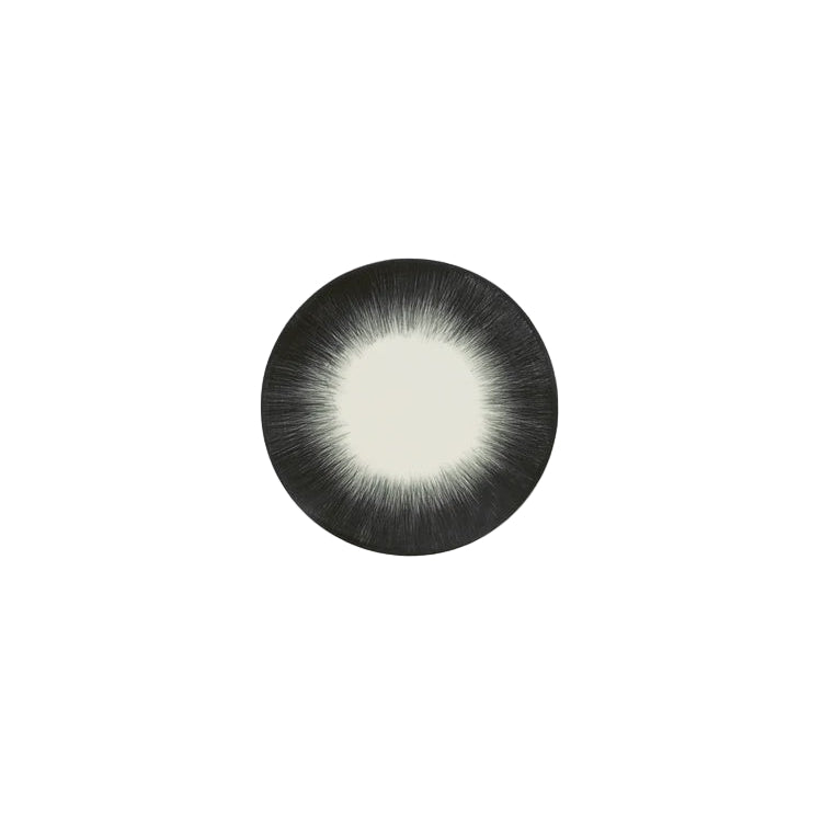 The Dé collection by Ann Demeulemeester transforms porcelain into shadow paintings. Each fine plate features hand-painted dégradé edges, layered to create a striking play of light and shadow. This craftsmanship makes every piece unique, allowing endless combinations to suit the guest, dish, or atmosphere.