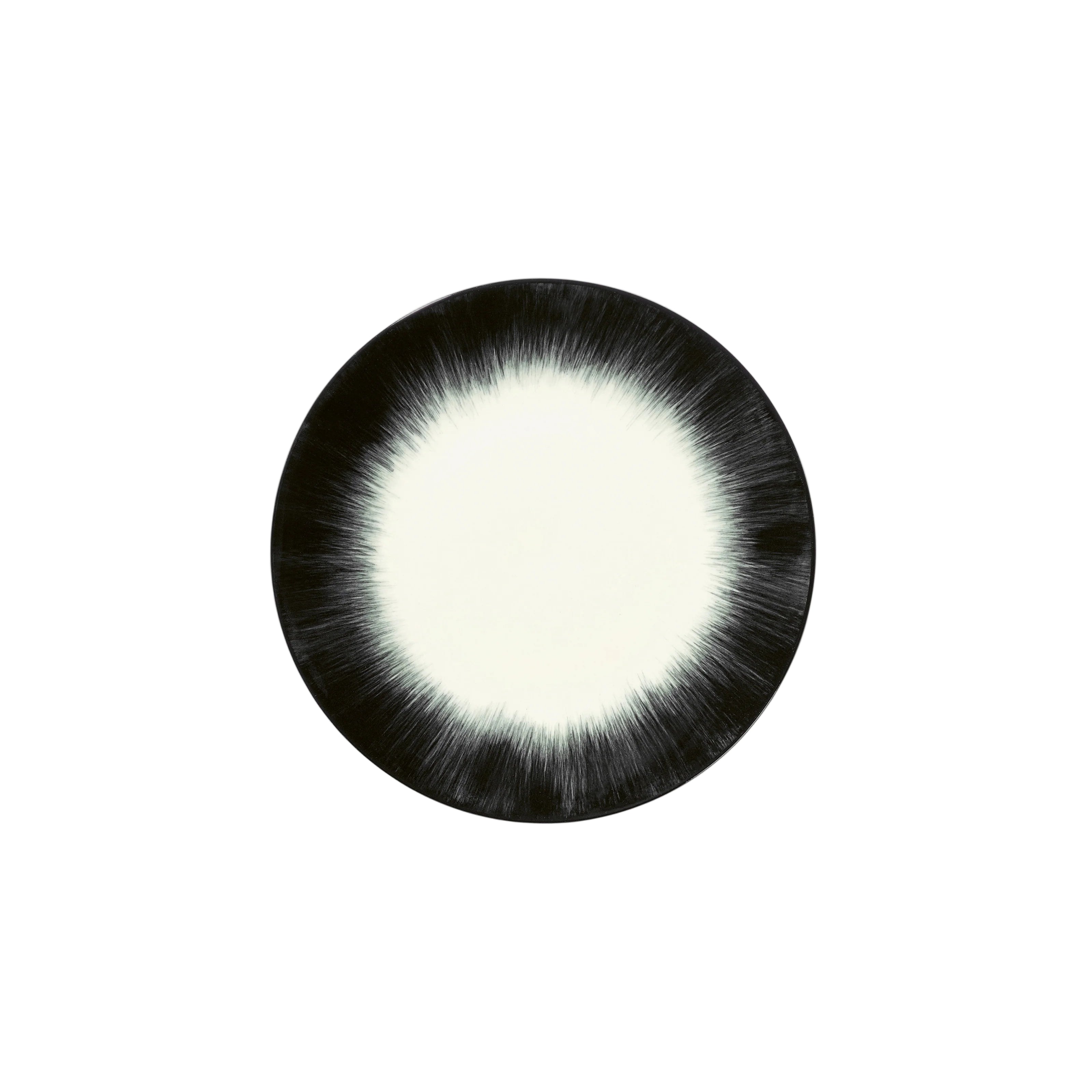 The Dé collection by Ann Demeulemeester transforms porcelain into shadow paintings. Each fine plate features hand-painted dégradé edges, layered to create a striking play of light and shadow. This craftsmanship makes every piece unique, allowing endless combinations to suit the guest, dish, or atmosphere.