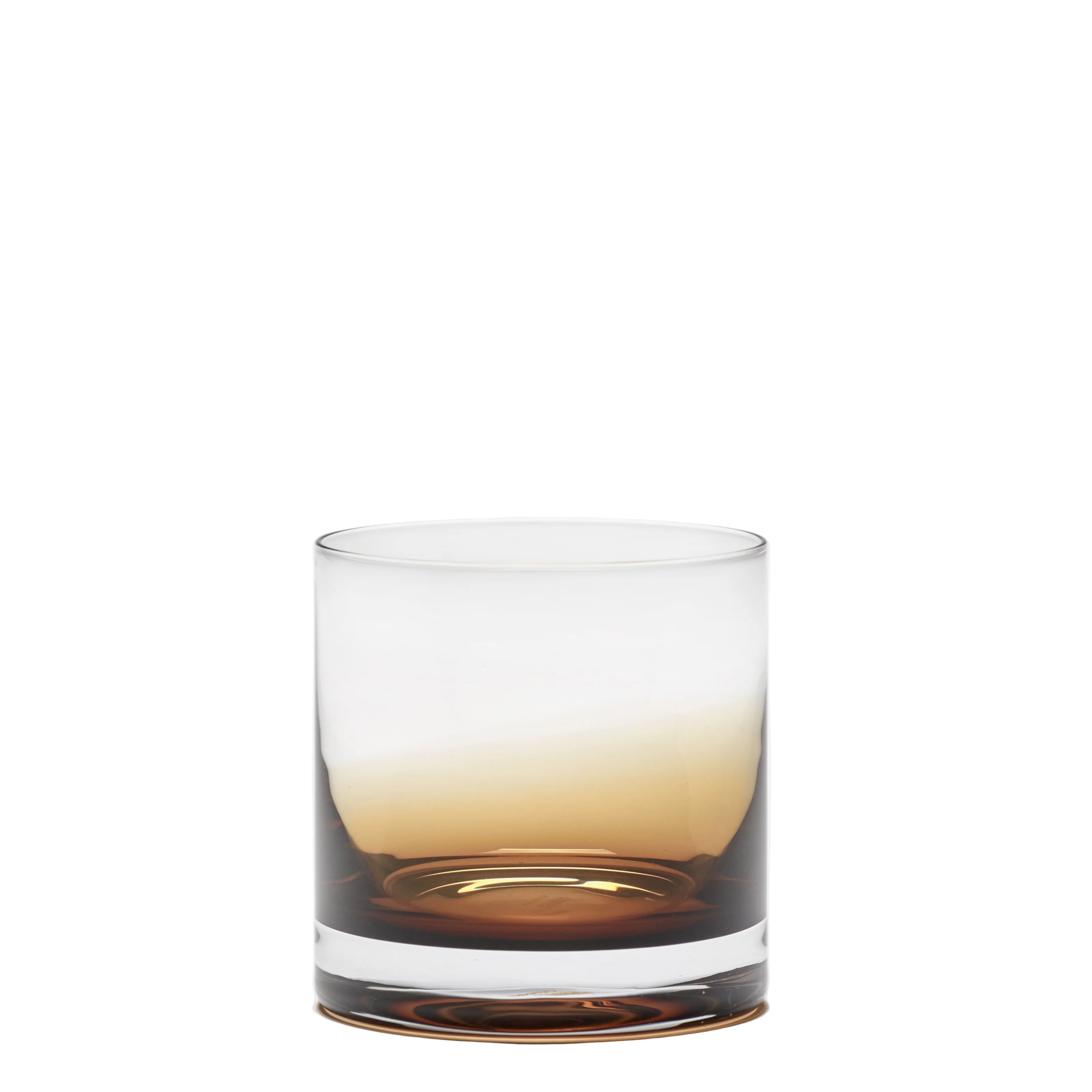 Kelly Wearstler amber tumbler glasses bring vintage inspiration into modern design. Crafted with a three-layer glass technique, the warm amber tone contrasts with the thick base and clean, straight silhouette — perfect for stylish everyday glassware or entertaining.