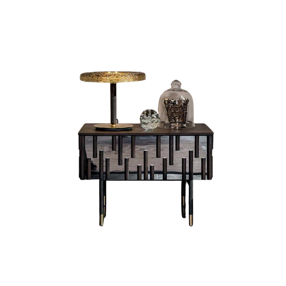 Mirror, MDF lacquered panel with polyurethane paints. Aluminium hands. Mirror is 5mm thick. Require AA batteries. Not for use outdoors. Mirror colours available in silver, fumè , or gold.
