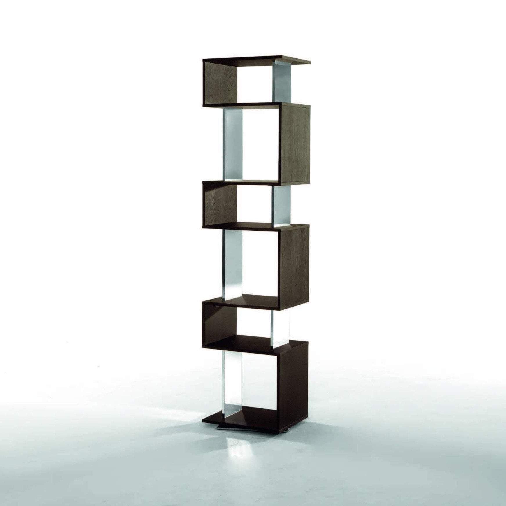 Materials - Black chromed structure, walnut shelves and a black marble base.