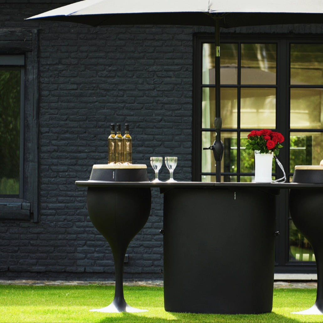 The “Complete Bar” set includes everything in the photo, including an inner ice bucket inside the “wine glasses” caps for the top of the “wine glass” and umbrella.