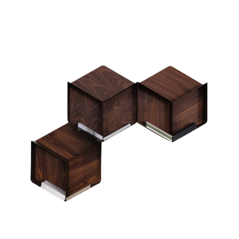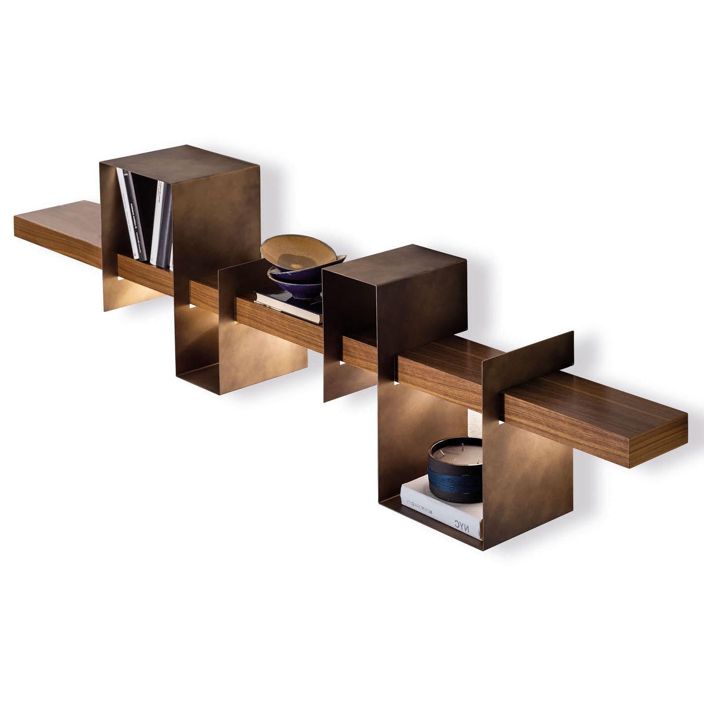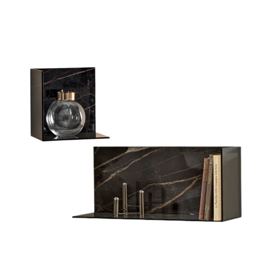 This shelf is suitable to create the most varied compositions, inspired by the sails that float on the sea. Made of lacquered metal available in Matt Black and Stone Bronze.