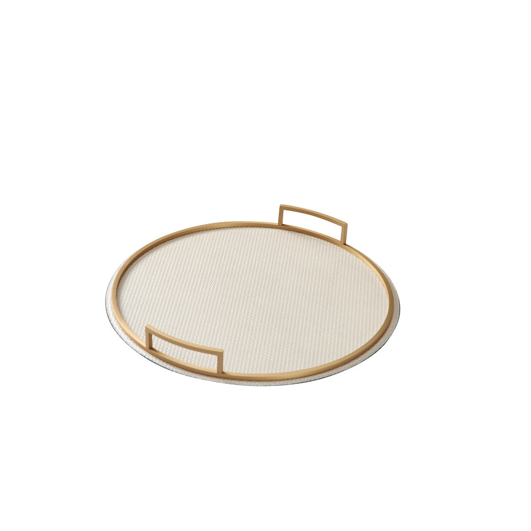 Showcasing an intricate studded mosaic design, the Marrakesh collection features carefully applied gold studs. Includes cream leather, mirror, gold finished hardware and LusterLoc anti-tarnish lining.